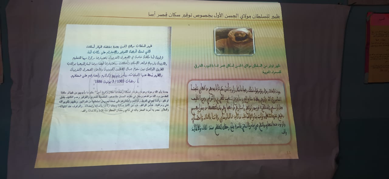 هذه الوثائق إضافة إلى مخطوطات أخرى، قدمها الأستاذ المؤطر في الفقرة الثانية من النشاط،يمكن للتلاميذ من خلالها ملامسة تاريخية و ثبوتية السيادة المغربية على صحرائه، و مدى ترابط العلاقات بين المكونات القبلية في جنوب و شمال المملكة، وهي فرصة لتعريف الناشئة بمفاهيم الهوية المغربية الجامعة، التراث المغربي الغني جنوبا و شمالا، التبادل الثقافي و الحضاري بين مدنه في الشمال و بين حواضر الصحراء المغربية.